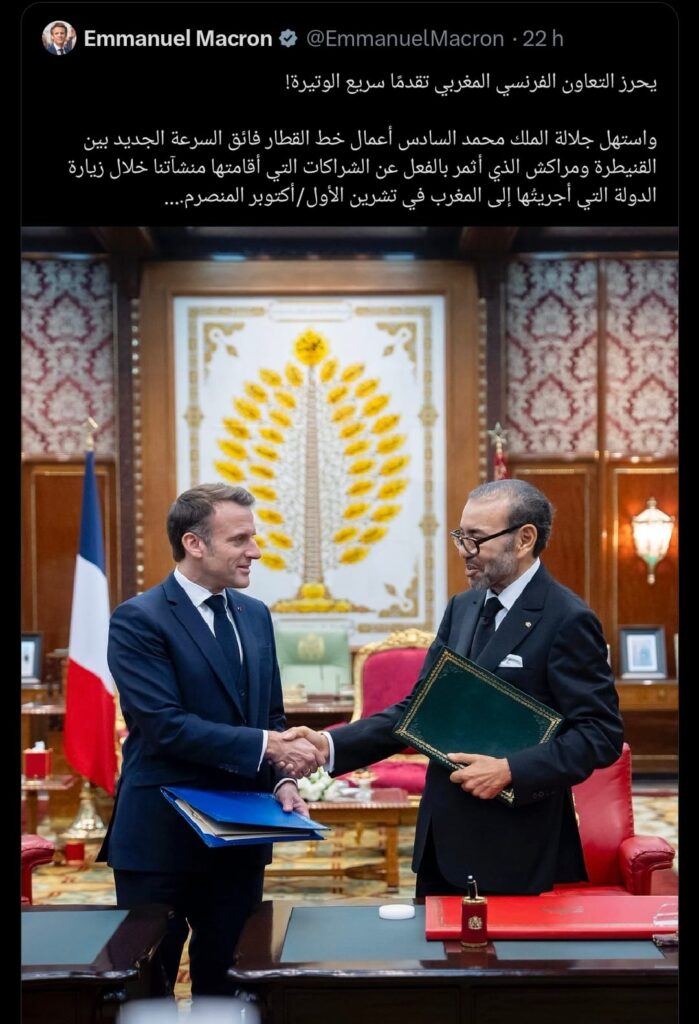 إن قرار رئيس دولة كبرى مثل فرنسا باستخدام اللغة العربية، وهو أمر نادر في التواصل السياسي الغربي، يكشف عن وعي عميق بقيمة المغرب كجسر حضاري وثقافي بين الشمال والجنوب، وبين الشرق والغرب. المغرب لم يكن يوماً مجرد بلد جغرافي في شمال أفريقيا، بل ظل على الدوام رقماً أساسياً في المعادلات السياسية والدبلوماسية، وصوتاً مسموعاً في القضايا الإقليمية والدولية.