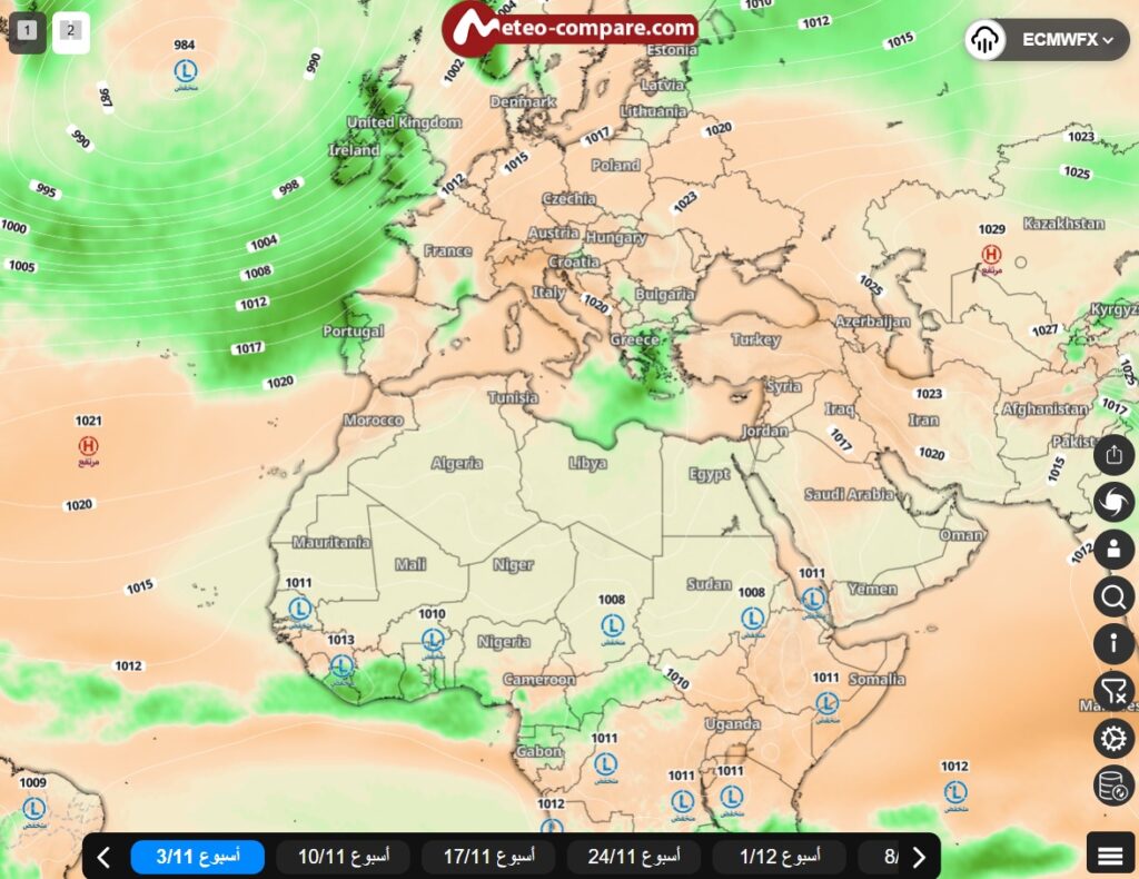 تُشير المعطيات الجوية أيضاً إلى احتمال بـ30% لحدوث “انفلاتات قطبية” (أو تيار هوائي قطبي بارد) في الثلث الثاني من شهر نوفمبر. هذه الظاهرة، إن حدثت، يمكن أن تدفع بالكتل الهوائية الباردة إلى الجنوب، مما قد يكسر حلقة الضغط المرتفع ويسمح للمنخفضات الجوية بالتوغل أو بتكوين جبهات هوائية نشطة، وهو ما قد يعيد الأمل في تساقطات مطرية واسعة.