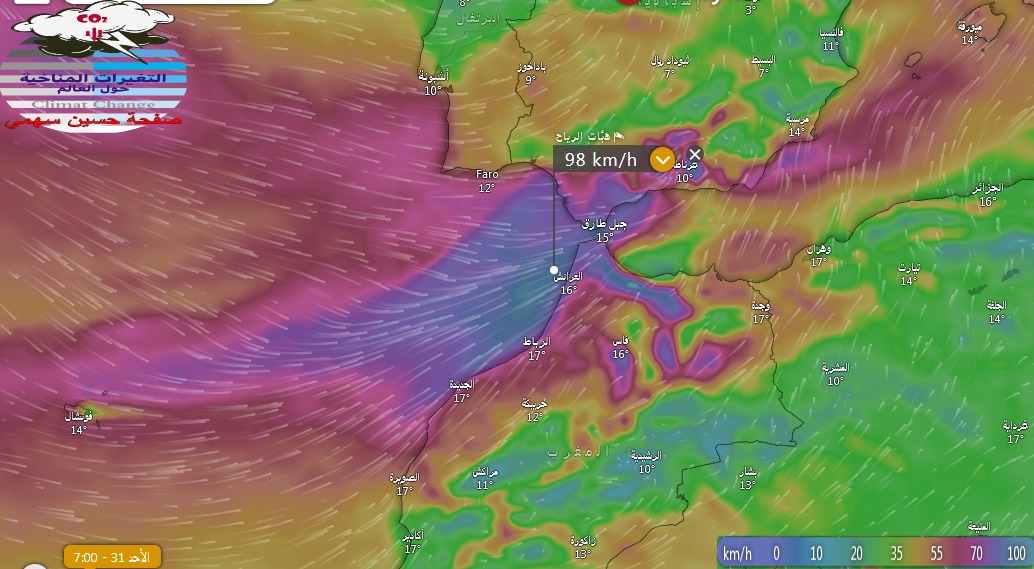 - سرعة الرياح تتراوح بين 75 و 100 كلم في الساعة.
