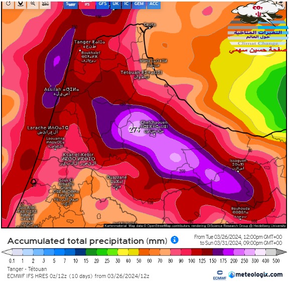 - تتوقع النماذج العالمية، خاصةً النموذج الأوروبي، هطول أمطار غزيرة على شمال غرب المغرب.