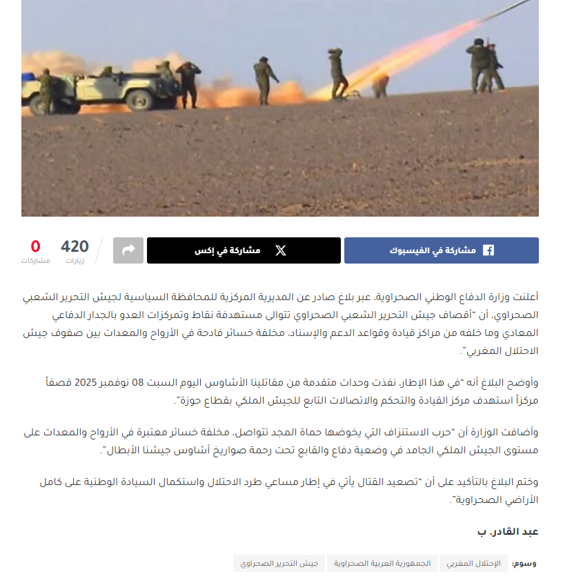 في آخر حلقات المسرحية المتكررة، عاد إعلام البوليساريو ليطلق مصطلحات كبيرة على أحداث صغيرة، حيث وصف ما أسماه “قصف نوعي بقطاع حوزة”، في حين أن الحقيقة أكثر بساطة… وأكثر فكاهة!