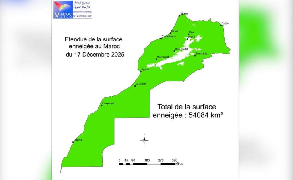 تتجه أنظار المتابعين للشأن المناخي في المغرب نحو قمم الأطلس والريف، التي استعادت بريقها الأبيض بعد سنوات من التراجع. ووفق معطيات المديرية العامة للأرصاد الجوية، بلغت المساحة المغطاة بالثلوج إلى حدود 17 دجنبر 2025 حوالي 54.084 كيلومترًا مربعًا، وهو رقم يعكس تحسنًا واضحًا في الوضعية الثلجية على المستوى الوطني.