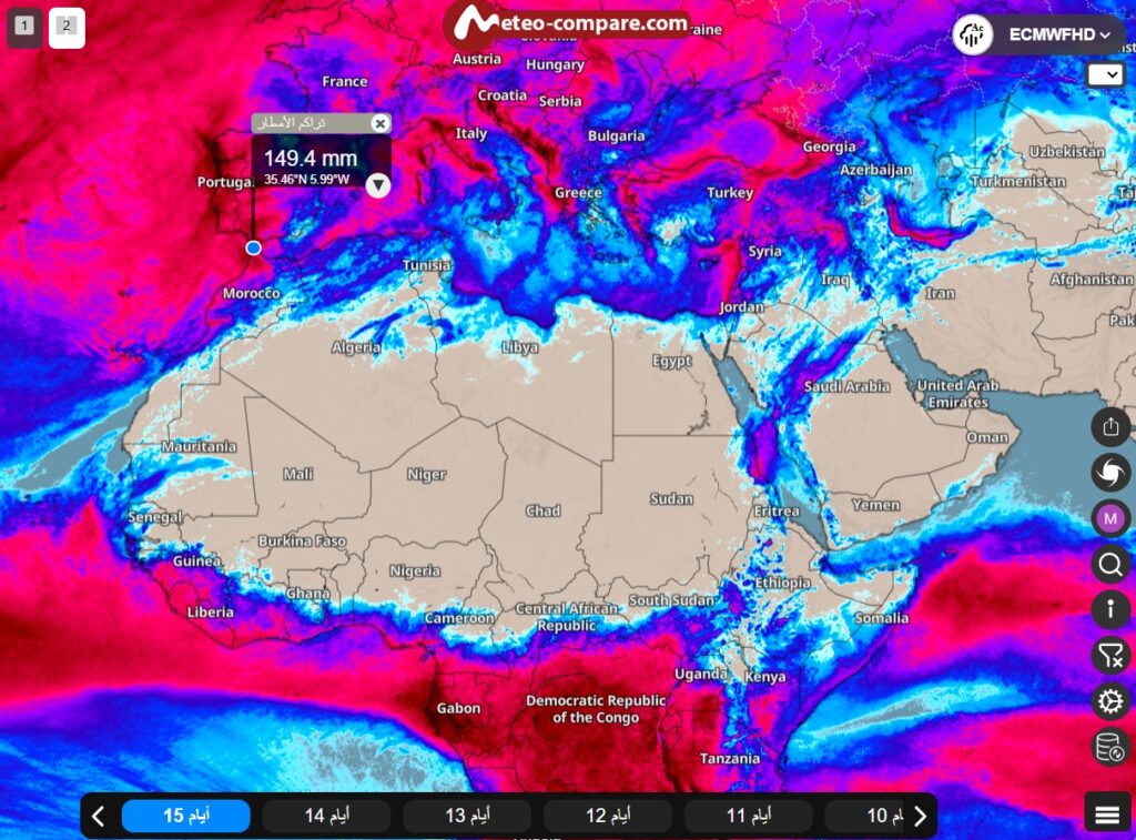تطور جوي مرتقب بالمغرب / المصدر: meteo-compare طقس وبيئة تطور جوي مرتقب بالمغرب / المصدر: meteo-compare