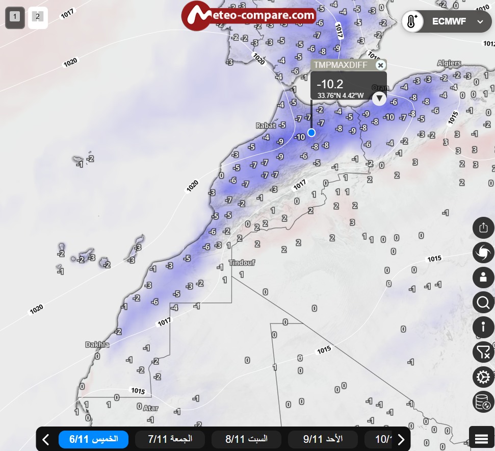 هذا التحرك للمرتفع فتح المجال أمام تيارات هوائية باردة قادمة من المحيط الأطلسي، لتعود وتساهم في انخفاض ملحوظ في الحرارة، مصحوبة بأجواء أكثر برودة على مختلف المناطق.