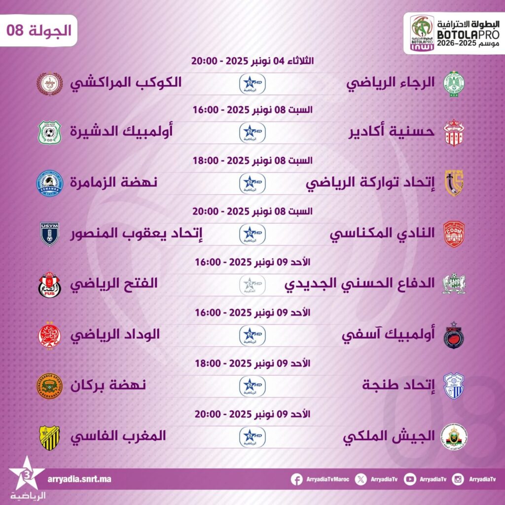 🗓️ البطولة الوطنية.. جدول مباريات الجولة الثامنة (08)