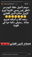 ونشر محمد باسو تدوينة عبر خاصية الستوري بحسابه الرسمي بموقع “انستغرام”، جاء فيها:”سيتم تأجيل حلقة اليوم من ناطق غير رسمي تكريما لروح الزميل صلاج الدين الغماري رحمه الله وأسكنه فسيح جناته ستبقى دائما حيا في قلوبنا”.