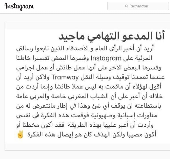 وبرر الشاب الذي يدعى”التهامي” فعلته هذه، بمحاولته إيصال فكرة إلى الرأي العام الوطني، بأن الشباب المغربي والعربي باستطاعته أن يوقف أي شيء، معتبرا سلوكه غير طائش.