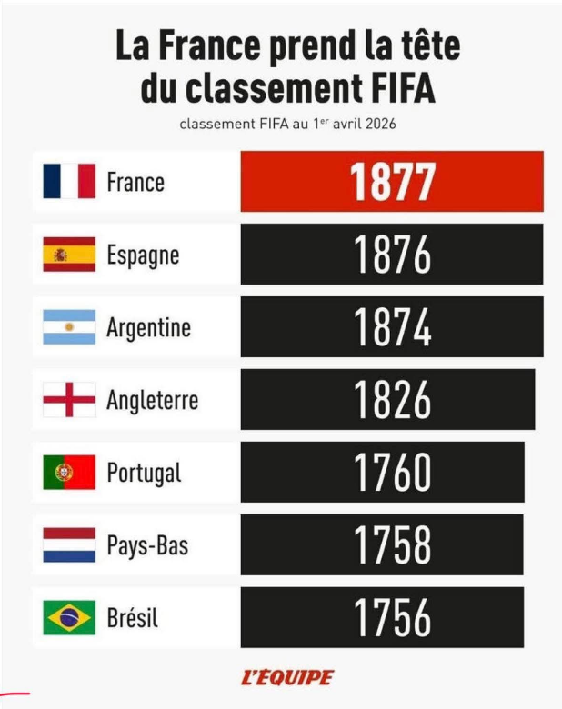 قامت صحيفة L’Équipe الفرنسية بنشر ترتيب المنتخبات العالمية، لكنها توقفت عند المركز السابع، ما يعني إغفال المنتخب المغربي من القائمة المعروضة، رغم حضوره ضمن العشرة الأوائل عالميا وفق تصنيف FIFA.