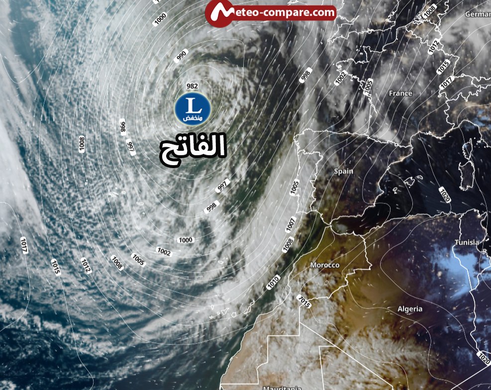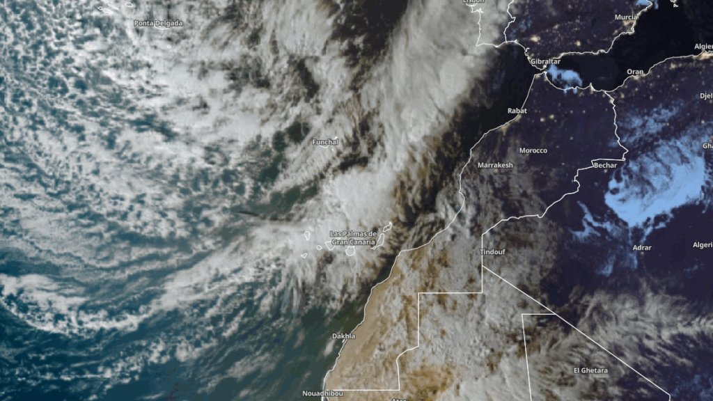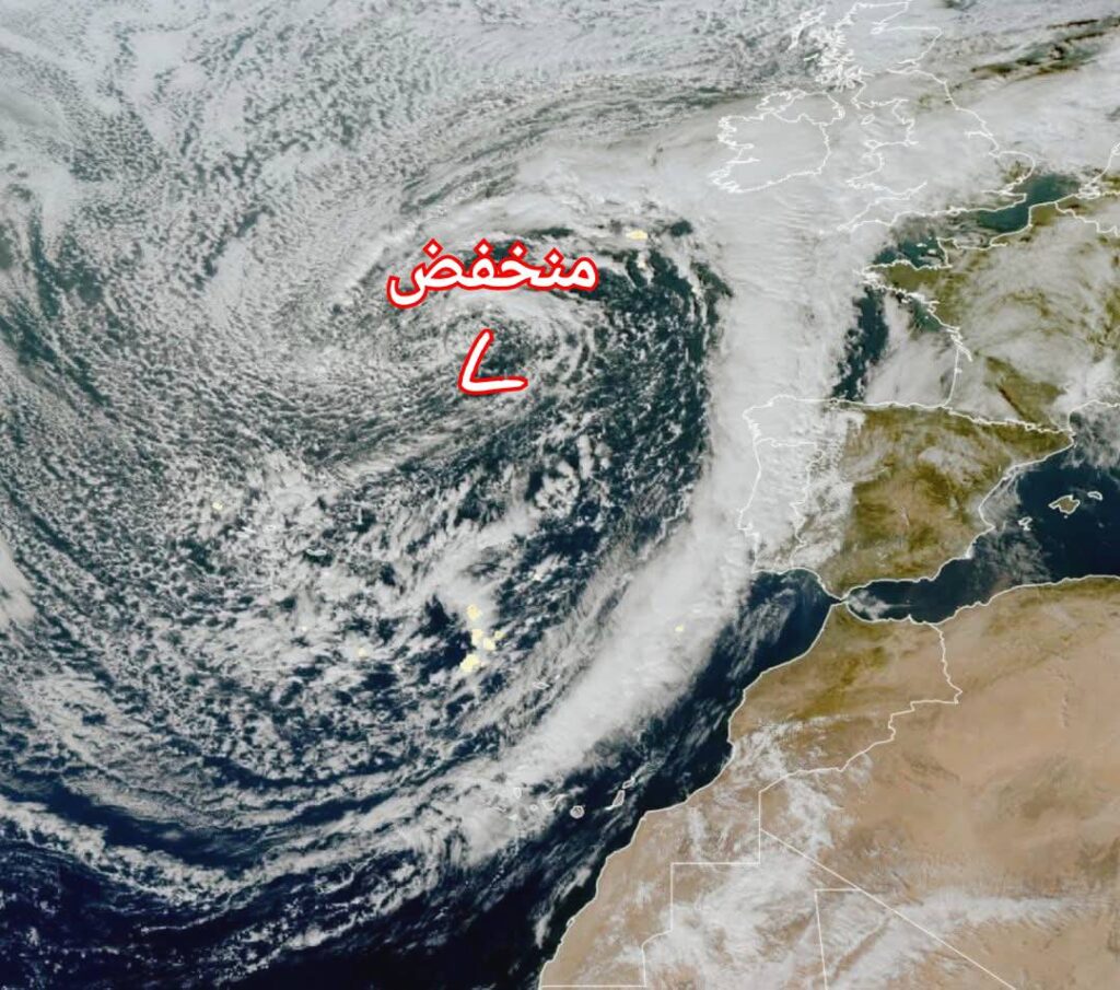 تُظهر آخر صور الأقمار الاصطناعية تحرك المنخفض الجوي العميق نحو الأجواء المغربية، في مرحلة جديدة من تطوره، بعد تمركزه خلال الساعات الماضية فوق عرض المحيط الأطلسي إلى الغرب من شبه الجزيرة الإيبيرية.