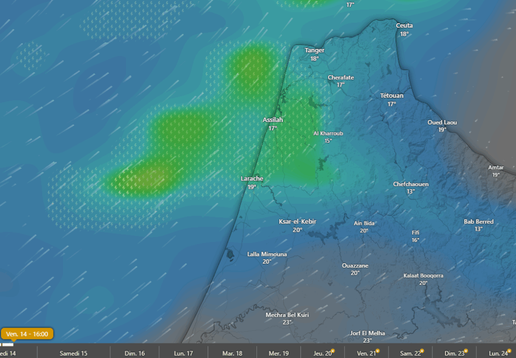 ستتواصل الأجواء غير المستقرة، مع أمطار على منطقتي طنجة واللوكوس، وظهور سحب عابرة على السهول الأطلسية الشمالية والوسطى.
