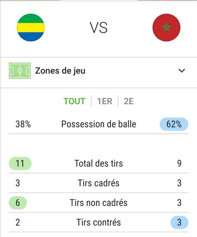 وحصل مهاجم المنتخب الغابوني، جيم ألفينيا، على أفضل تنقيط ضمن منتخب بلاده، ب7.6 على 10.