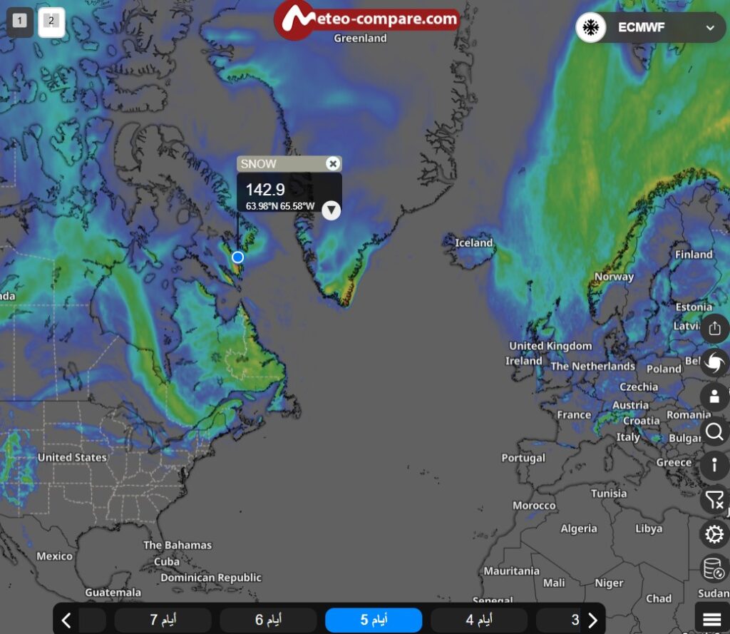 وفي سياق متصل، تتطابق التحليلات الصادرة عن شبكة أجواء العرب مع ما تُظهره النماذج العالمية، حيث تتوقع الشبكة أن تتأثر كل من المملكة المغربية والجزائر ابتداءً من 20 نوفمبر 2025 بنزول قطبي بارد قادم من شمال أوروبا نحو غرب البحر المتوسط.