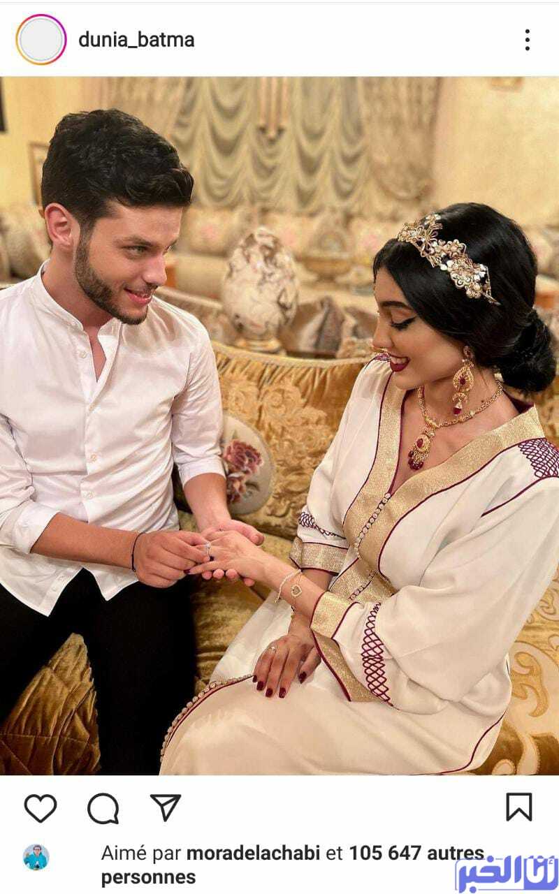 أعلنت الفنانة المغربية دنيا باطمة على صفحتها بالمنصة الاجتماعية “الأنستغرام” خبر خطوبة أختها الصغيرة في العائلة من شاب وسيم كما يبدو في الصورة، و وسط منزل عصري.