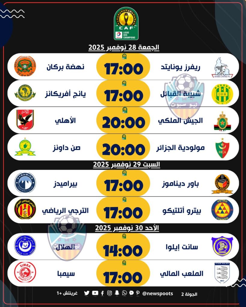 عادت صافرة الحماس لتعلن عن جولة جديدة من المتعة والإثارة في دوري أبطال أفريقيا 2025! بعد ضربة البداية القوية في الجولة الأولى، تتجه أنظار عشاق كرة القدم الأفريقية نحو الملاعب لمعايشة منافسات الجولة الثانية من دور المجموعات، والتي تحمل في طياتها الكثير من التحديات والمواجهات النارية التي قد ترسم ملامح الفرق المتأهلة مبكراً.