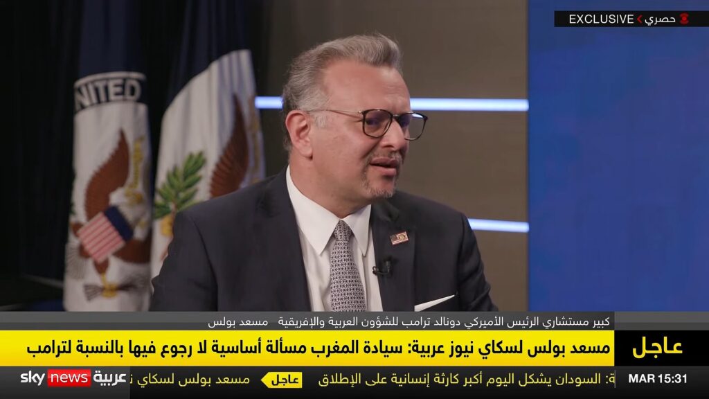 كشف اليوم الاثنين 27 أكتوبر 2025، كبير مستشاري الرئيس الأمريكي دونالد ترامب للشؤون العربية والإفريقية “مسعد بولس” في مقابلة مع قناة سكاي نيوز عربية عن موقف بلاده من الصحراء المغربية، مؤكدًا دعم الولايات المتحدة لمقترح الحكم الذاتي المغربي.