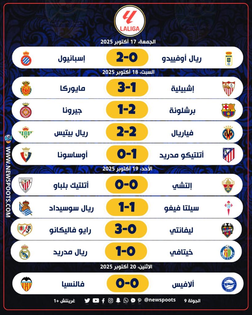 نتائج الدوري الإسباني/ المصدر: newspoots