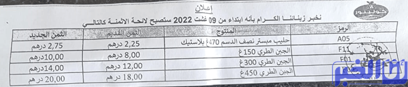 قررت شركة ”كولينور“ الخاصة بالحليب و مشتقاته، الرفع من ثمن بعض منتوجاتها، وفق ما جاء في إعلان رسمي لها وزعته على أصحاب دكاكين المواد الغذائية و عموم الزبناء الذين يشترون منتوجات الشركة، اطلعت عليه جريدة “أنا الخبر” الإلكترونية.