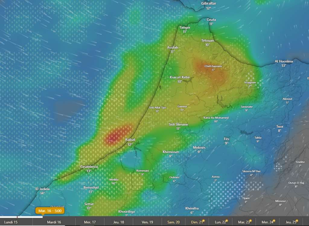 خلال هذه المرحلة، يُتوقع أيضًا نشاط ملحوظ للرياح، قد تهب قوية أحيانًا، خاصة بالواجهة المتوسطية، والسواحل الشمالية والوسطى، والأطلس، والجهة الشرقية، وحتى بعض مناطق الأقاليم الجنوبية.