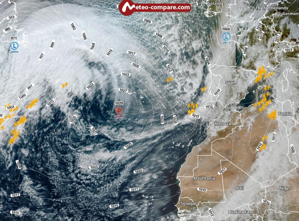 هذا التباين يسمح بتدفق كتل هوائية رطبة قادمة من المحيط الأطلسي والبحر الأبيض المتوسط، وعند التقاء هذه الرطوبة بالبرودة العلوية، تتشكل سحب غير مستقرة مسؤولة عن الأمطار الرعدية والزخات القوية.