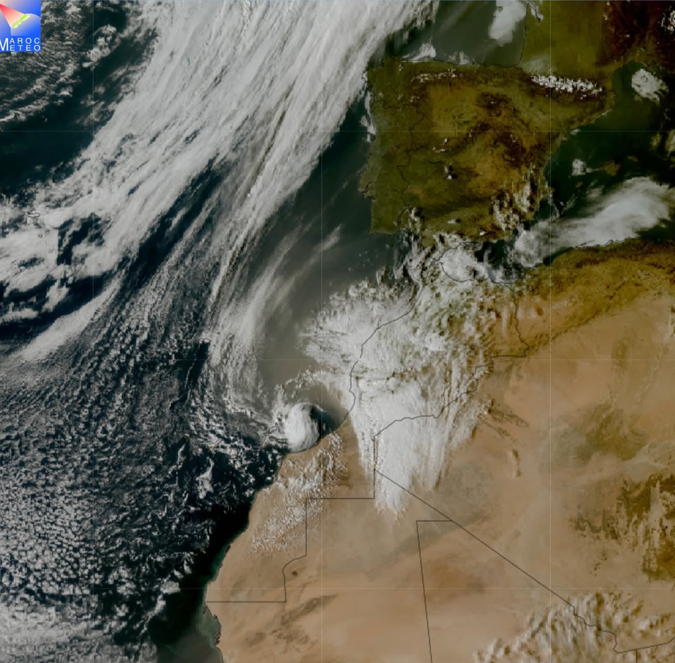 أظهرت أحدث صور القمر الاصطناعي من الجيل الثالث MTG – True Color عند الساعة الرابعة والنصف بتوقيت غرينيتش تصاعد كميات كبيرة من الغبار من الصحراء الكبرى باتجاه المغرب والمحيط الأطلسي.