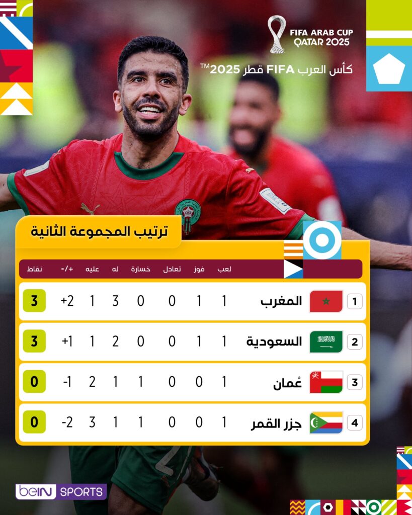 ترتيب المجموعة الثانية في كأس العرب قطر 2025 – الجولة الأولى