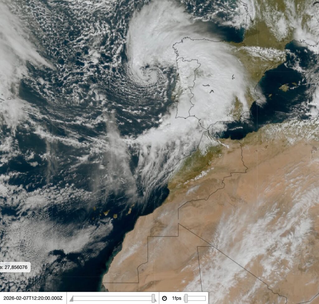ويمتد الغطاء السحابي الكثيف المصاحب للمنخفض ليشمل البرتغال وشمال ووسط إسبانيا، مع أمطار واسعة النطاق ورياح قوية، قبل أن تصل تأثيراته إلى شمال المغرب والمرتفعات الأطلسية.
