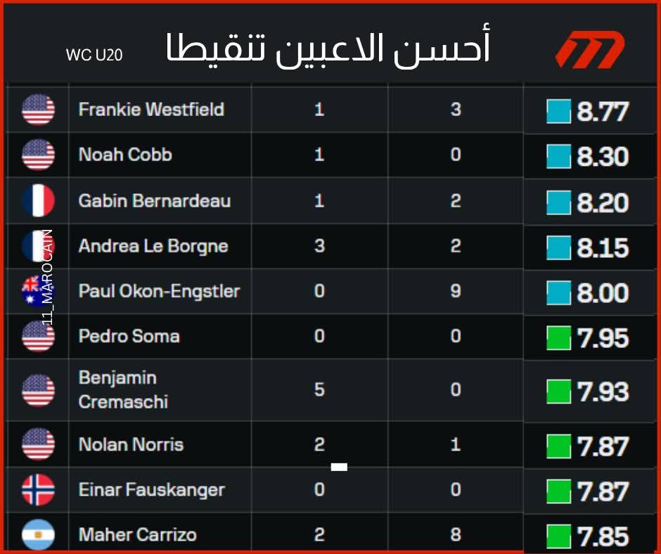 • أقوى هجوم: 16 هدفًا، مما يعكس فاعلية خط الهجوم الأمريكي.