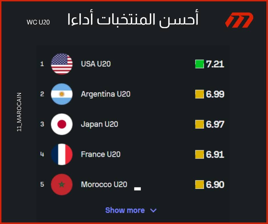 • خلق فرص التسجيل: بمعدل 5.3 فرصة لكل مباراة، أي ضغط مستمر على الدفاع المغربي.