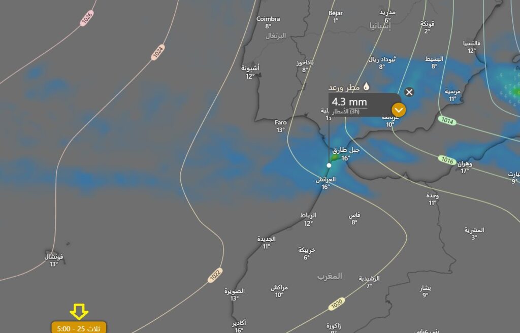 ويُرجح أن تشهد أقاليم أقصى الشمال الغربي ل”المغرب”، وتحديداً المناطق الممتدة بين طنجة والعرائش وتطوان، تساقطات ضعيفة إلى متوسطة الثلاثاء 25 نونبر وأيضا الأربعاء. هذه الأمطار هي نتاج تسرب محدود للكتل الهوائية الرطبة من الشمال الشرقي، أي من جهة البحر الأبيض المتوسط، وهي لا تمتلك القوة أو الامتداد الكافي لتغطي مساحات شاسعة، التأثير قد يمتد بشكل ضعيف ومتقطع ليشمل مناطق الريف الغربي، وبعض مرتفعات الأطلس المتوسط، وصولاً إلى الساحل الأطلسي كالجديدة وسهل سايس، لكنها في المجمل لن تكون كافية لتغيير ميزان الجفاف.