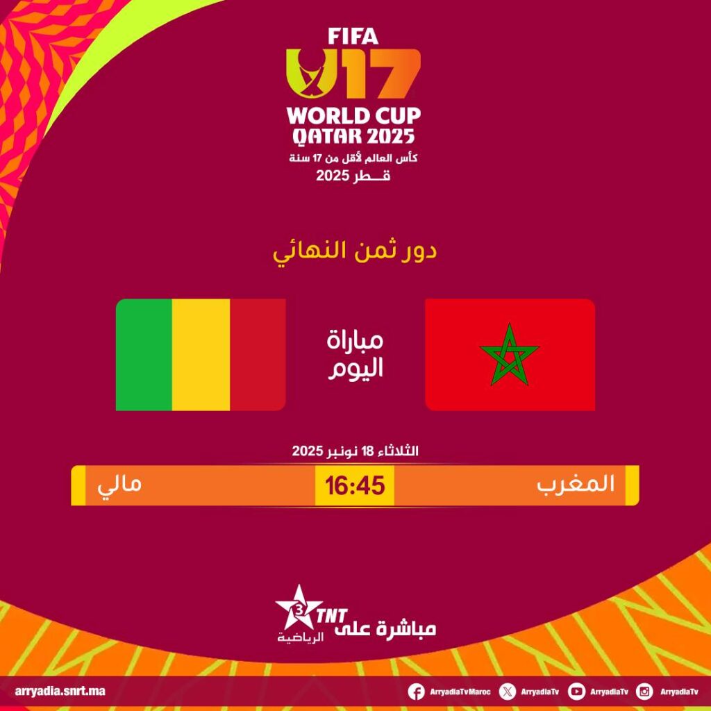 تتجه الأنظار لمواجهة المغرب ومالي (أقل من 17 سنة) في دور الـ16 بكأس العالم. مدرب مالي ينفي الثأر ويؤكد على هدف التأهل، مشيرًا إلى جاهزية فريقه. لاعبو مالي يعلنون عن طموحهم بالفوز من أجل الشعب. المغرب يستعد بالتركيز على التكتيك والسرعة. المباراة ستقام في أكاديمية أسباير يوم الثلاثاء (16:45 +1 غرينيتش) وستُنقل على بين سبورت المفتوحة وقناة الرياضية.