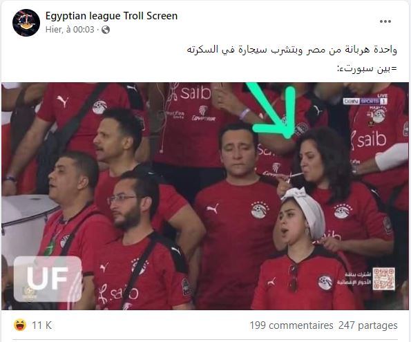 وعلى نطاق واسع، مع تعليقات ساخرة ومضحكة، انتشرت صورة النائبة وهي تشعل سيجارة، خلال أحداث المباراة الصعبة التي امتدت إلى شوطين إضافيين ثم انتهت بتفوق الفراعنة على أصحاب الأرض بركلات الترجيح.