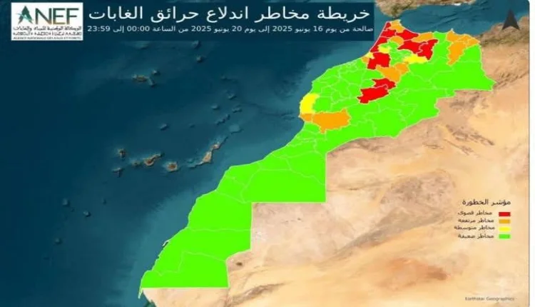 موجة الحر.. في ظل الموجة الحرارية المرتقبة التي ستضرب عددا من مناطق المملكة ما بين الاثنين 16 يونيو والجمعة 20 يونيو 2025، أصدرت السلطات المغربية نشرة إنذارية خاصة بخصوص ارتفاع خطر اندلاع الحرائق بالمجالات الغابوية والمناطق المجاورة لها.