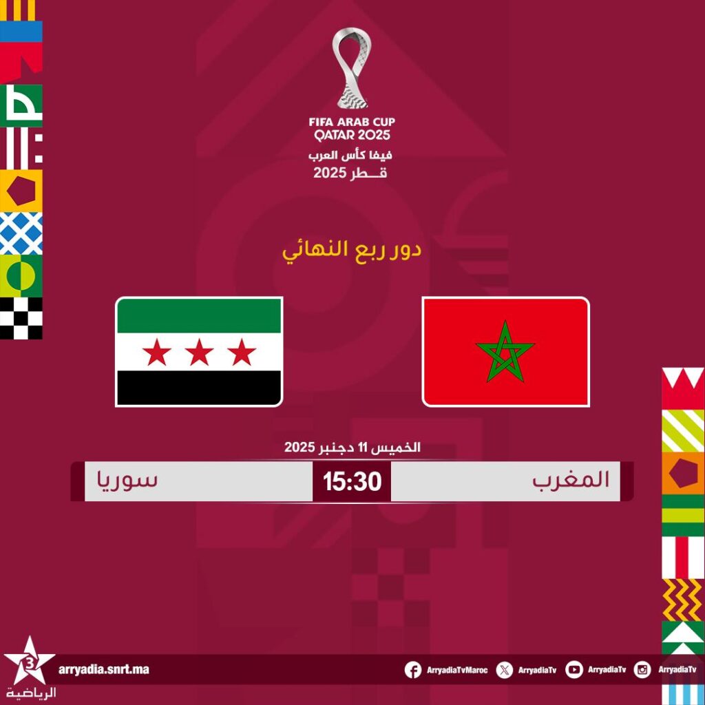 موعد مباراة المغرب وسوريا في ربع نهائي كأس العرب 2025