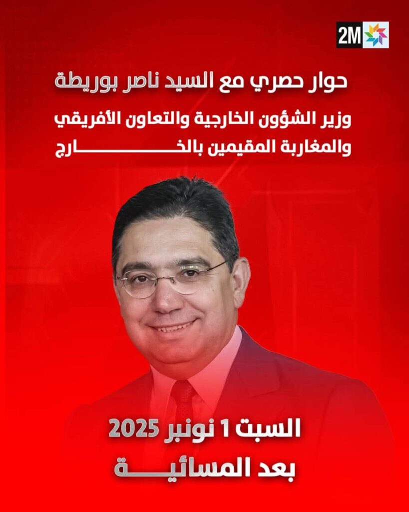 أعلنت القناة الثانية “دوزيم” قبل قليل، أنها ستستضيف وزير الشؤون الخارجية ناصر بوريطة في حوار خاص، مباشرة بعد نشرة الأخبار المسائية من مساء اليوم السبت 01 نونبر 2025.