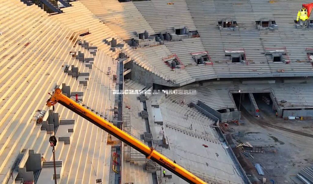 تم حتى الآن تثبيت 32 عمودًا فولاذيًا من إجمالي 56 عمودًا مخططًا، مما يشير إلى إنجاز أكثر من نصف هذه المرحلة المهمة من المشروع. هذه الأعمدة ستسهم في تعزيز الهيكل الهندسي للملعب وضمان استقراره ومتانته.