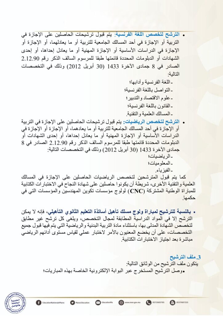 - الإجازة في أحد المسالك الجامعية للتربية.