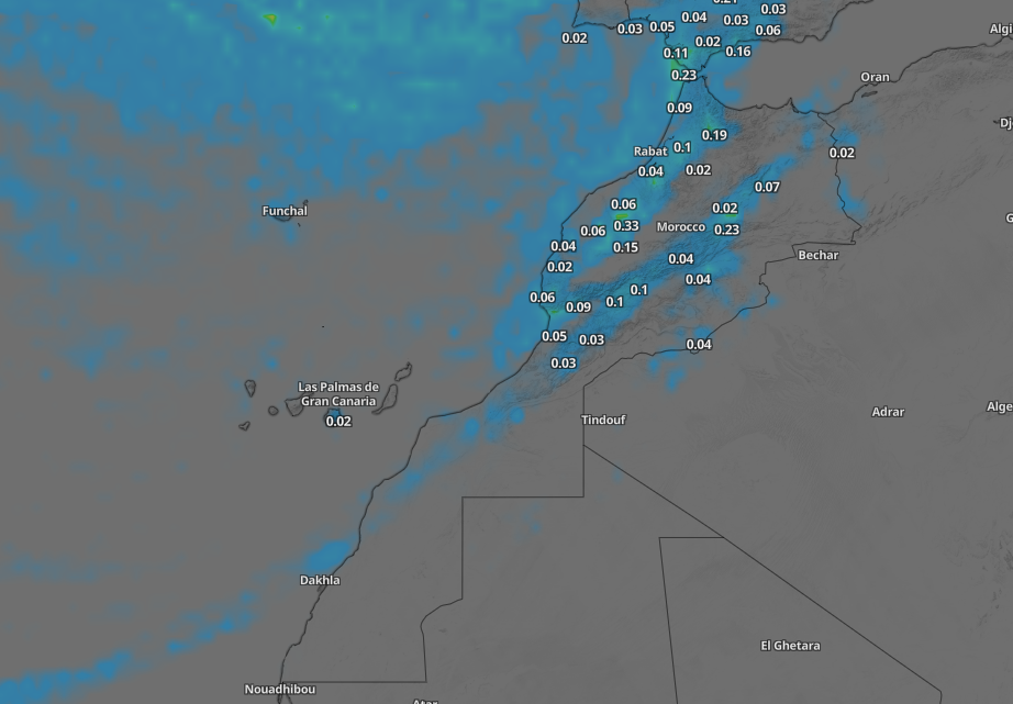- الرياح: هبات قوية نسبيًا على الأطلس والجهة الشرقية.