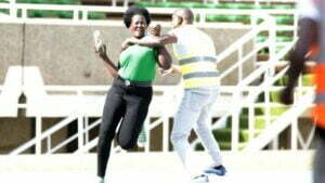 بالصور.. سيدة تقتحم الملعب وبيدها حجرة انتقاما لزوجها